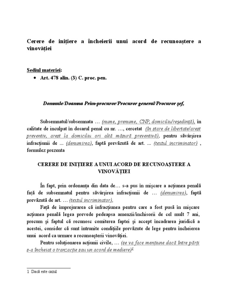 Cerere De Initiere A Incheierii Unui Acord De Recunoastere A Vinovatiei Docx