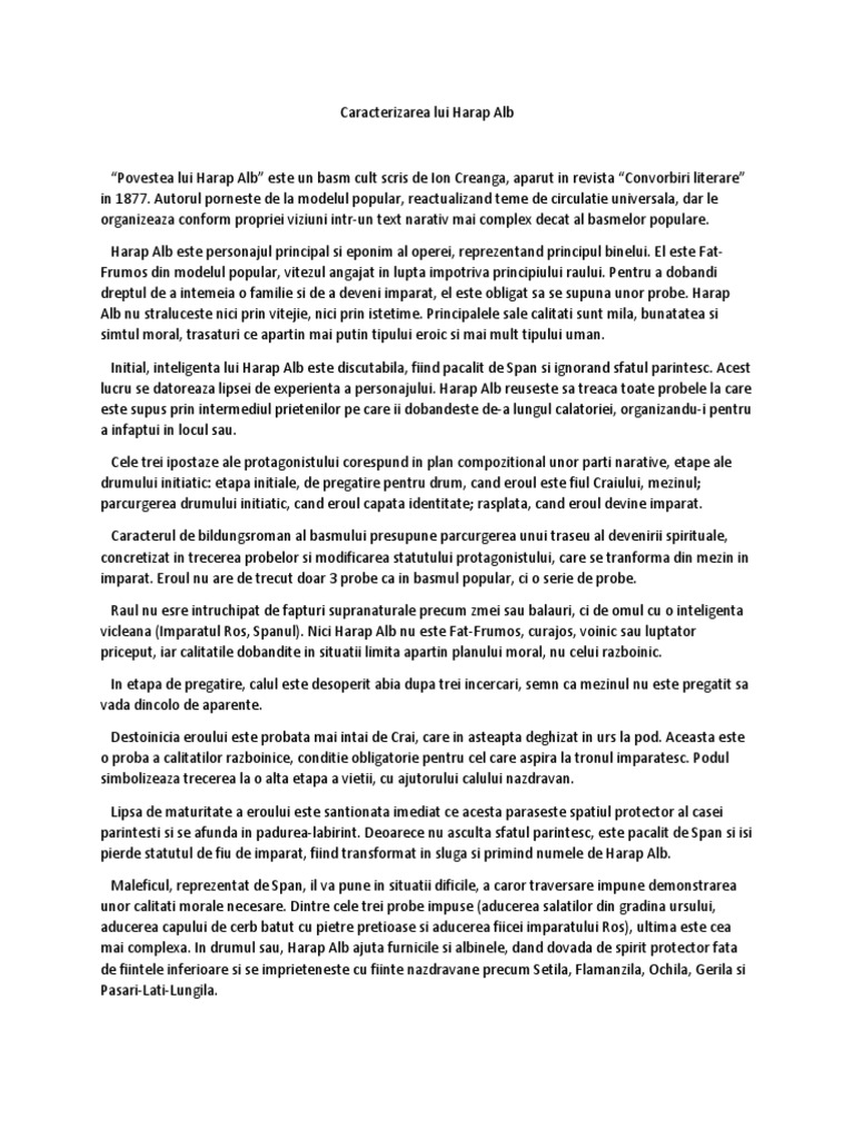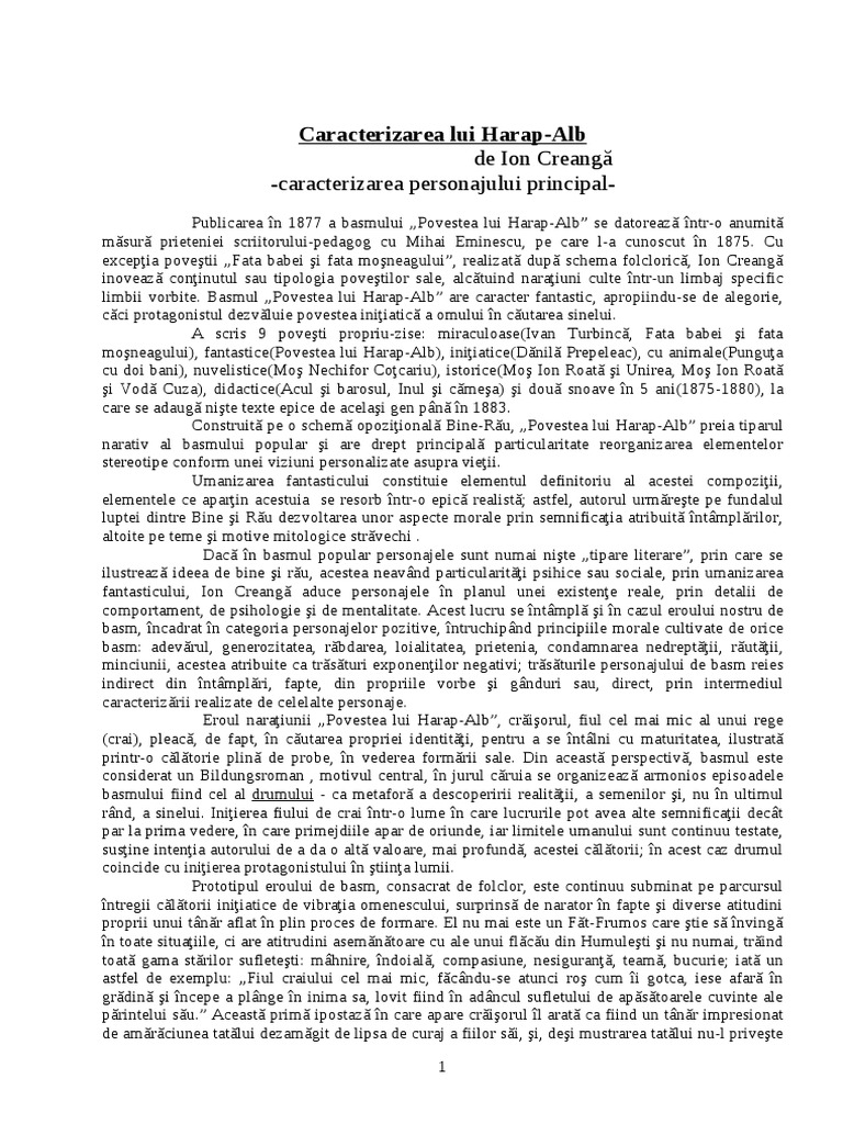 Doc Caracterizare Harap Alb Ana Maria Lepădatu Academia Edu