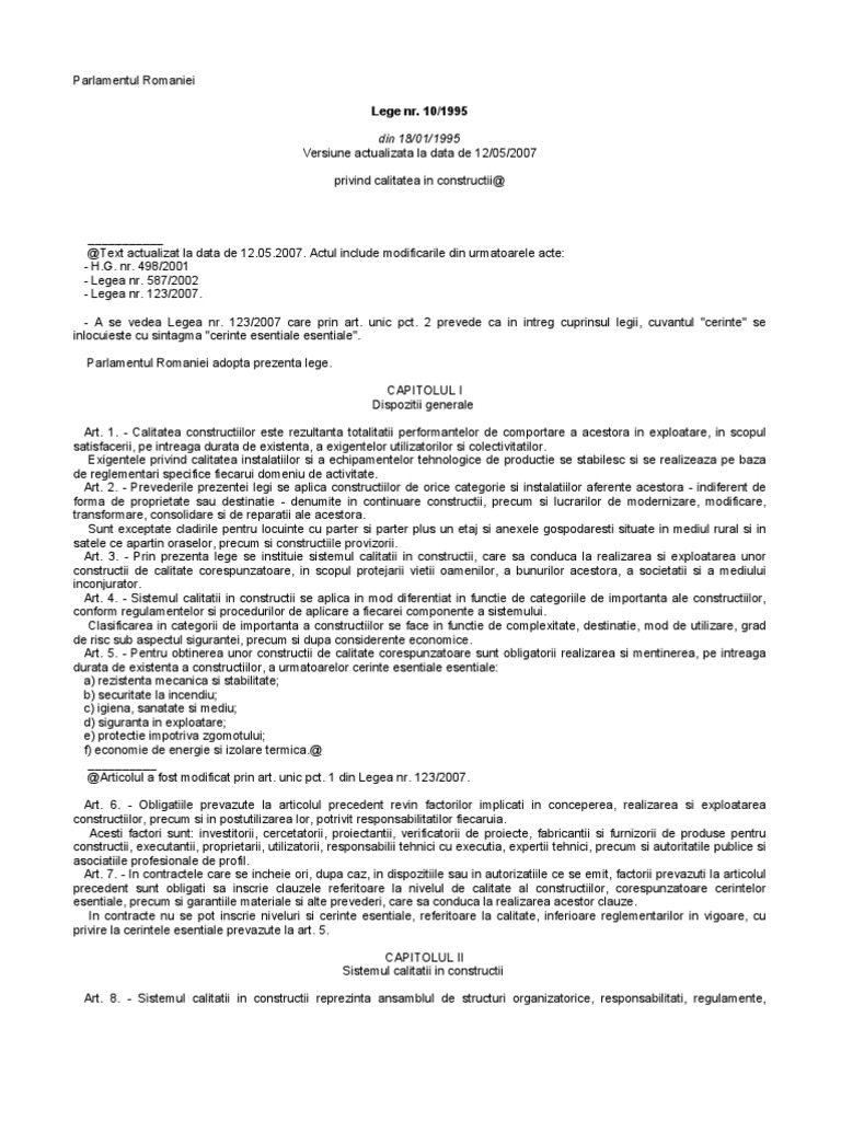 Pdf Lege Nr 10 Din 18 Ianuarie 1995 Republicată Actualizată Privind Calitatea In Construcţii Actualizată Pană La Data De 24 August 2016 Cornel Pepa Academia Edu