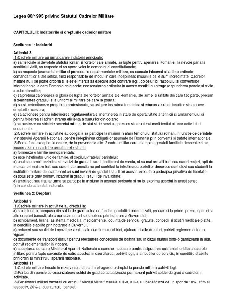 Legea 80 Din 1995 Privind Statutul Cadrelor Militare