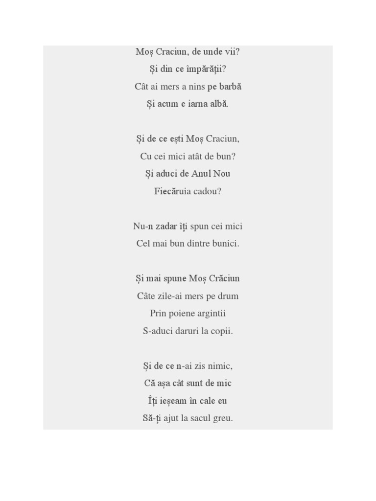 Mos Craciun De Unde Vii Versuri Cantec Docx