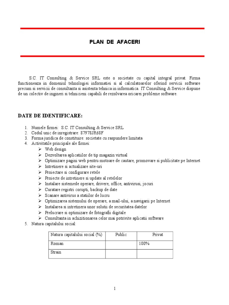 Plan De Afaceri Sc It Consulting Service Srl