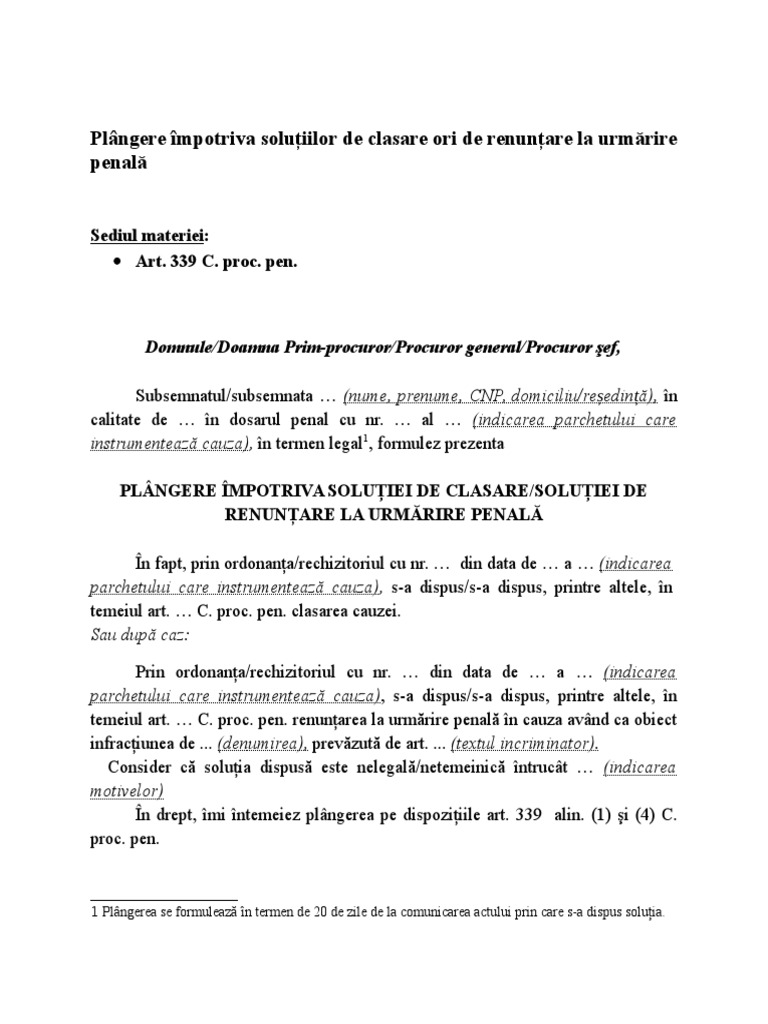 Plangere Impotriva Solutiilor De Clasare Ori De Renuntare La Urmarire Penala