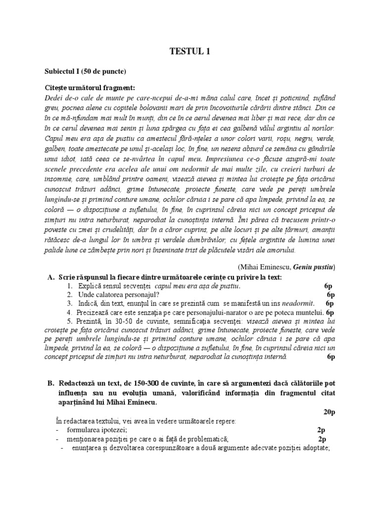 Evaluarea Națională Romană Clasa A Viii A Sesiunea Iunie 2013 Liceunet Ro