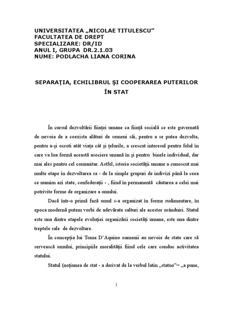 Referat Separatia Puterilor In Stat Drept 227757 Regielive