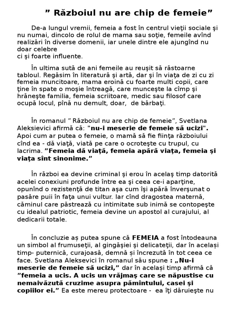 Razboiul Nu Are Chip De Femeie Svetlana Aleksievici