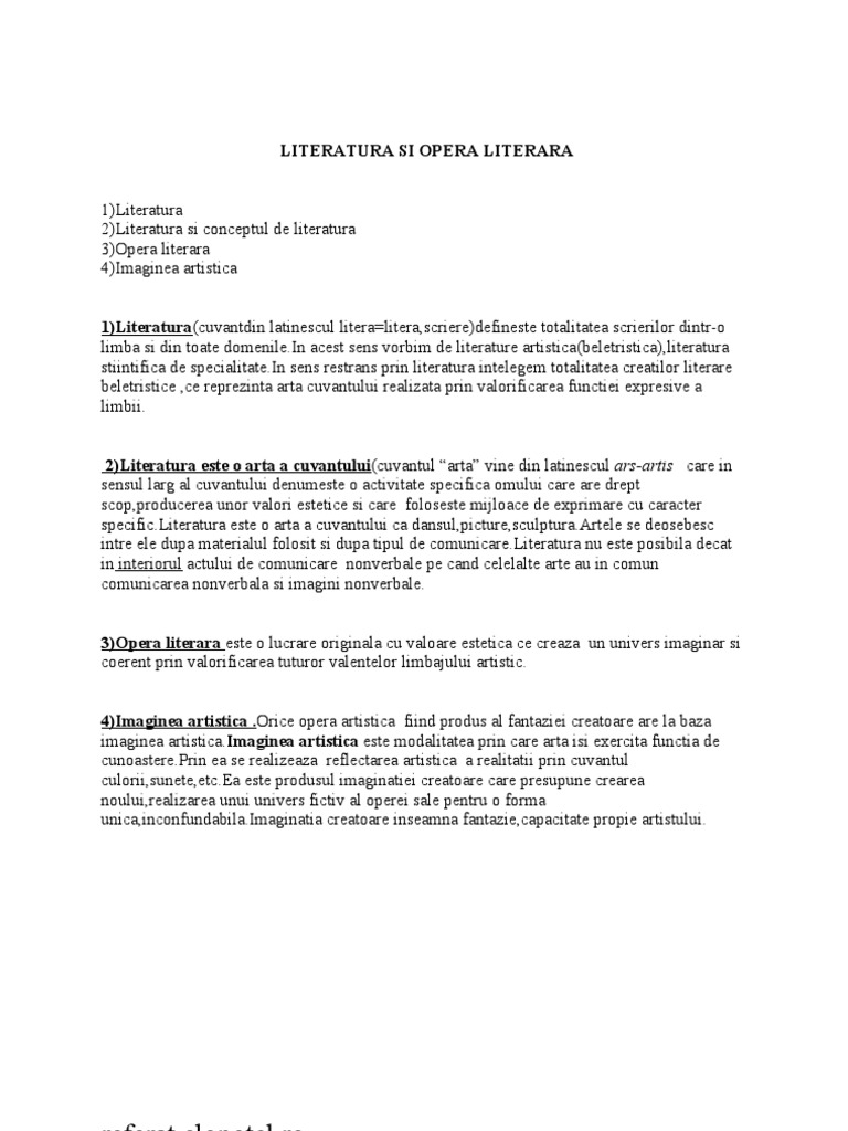 Literatura Si Opera Literara