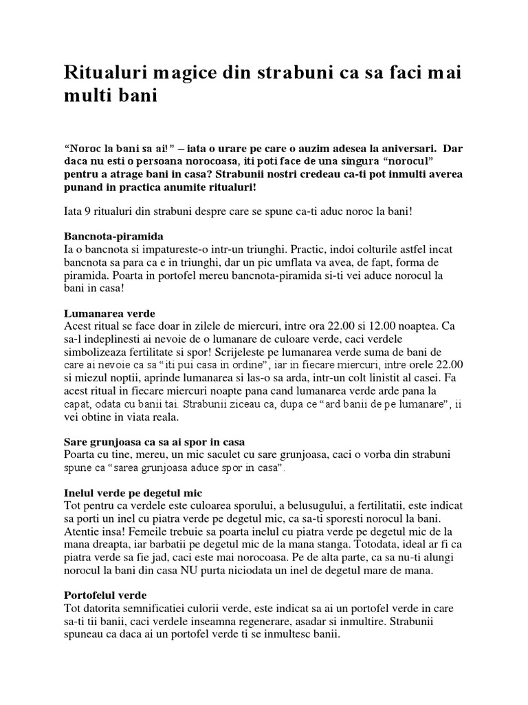 Ritualuri Magice Din Strabuni Ca Sa Faci Mai Multi Bani Docx