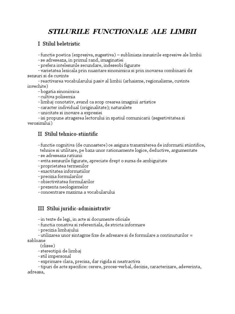 Referat Stiluri Functionale Ale Limbii Romane 281320 Graduo