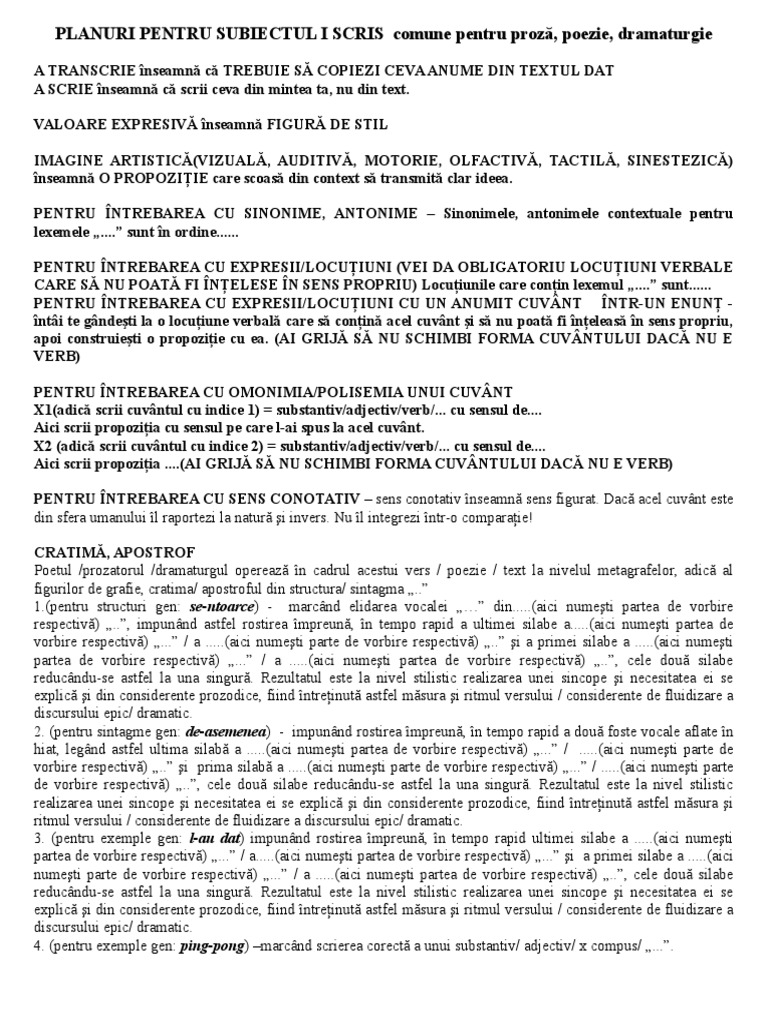 Teorie Subiectul I Si Ii Bac Lb Romana Doc Document