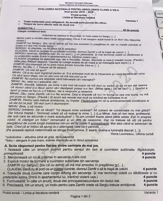 Modele Subiect Evaluare Națională 2020 Ce A Picat Anul Trecut La Romană