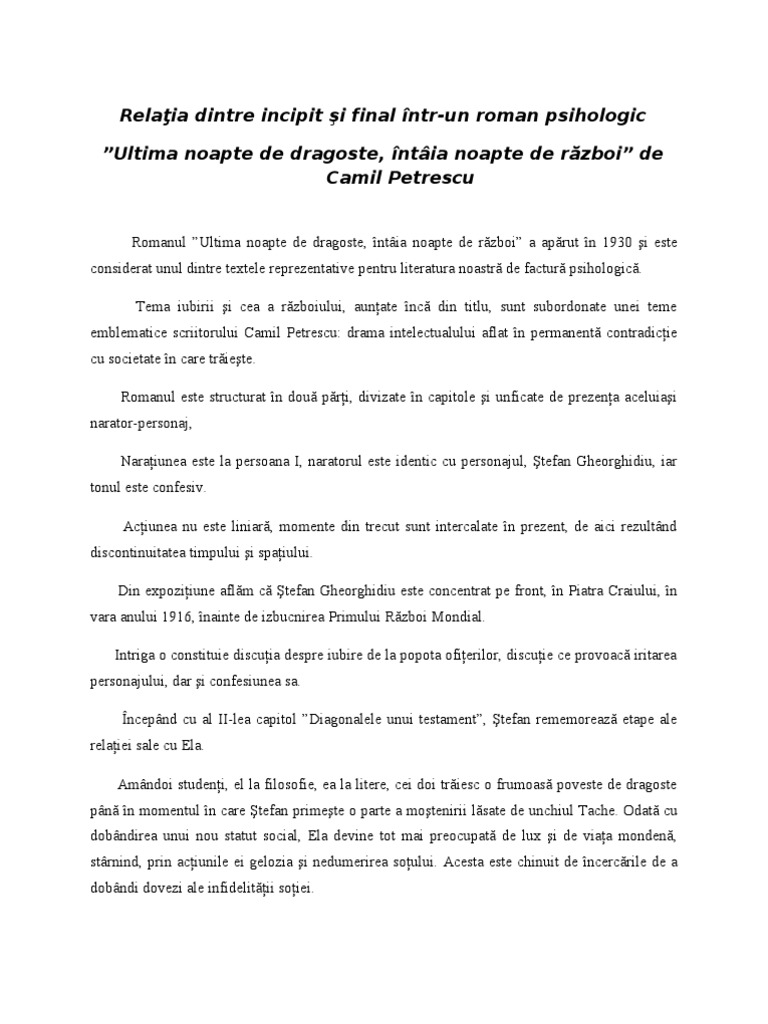 Eseu Relaţia Dintre Două Personaje Ultima Noapte De Dragoste