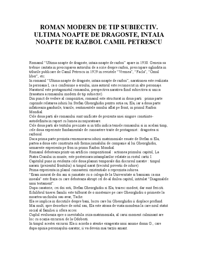 Www Referat Ro Romanul Subiectiv Modern Ultima Noapte De Dragoste I